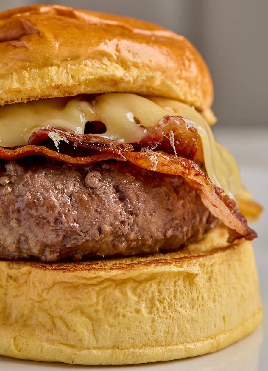 hamburguesa de excelente vacuno español con queso havarti asturiano fundido y beicon de primera y mayonesa
